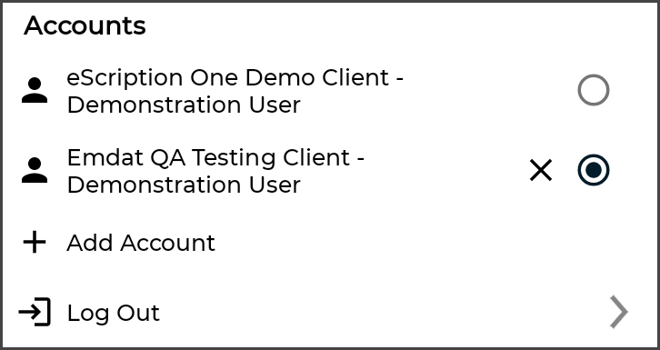 When the login name is saved, the profile appears on the login screen (with a combination of First name Last name). Tap the profile to log in as that user. Users will be prompted for the password if it has not been (or cannot be) saved.