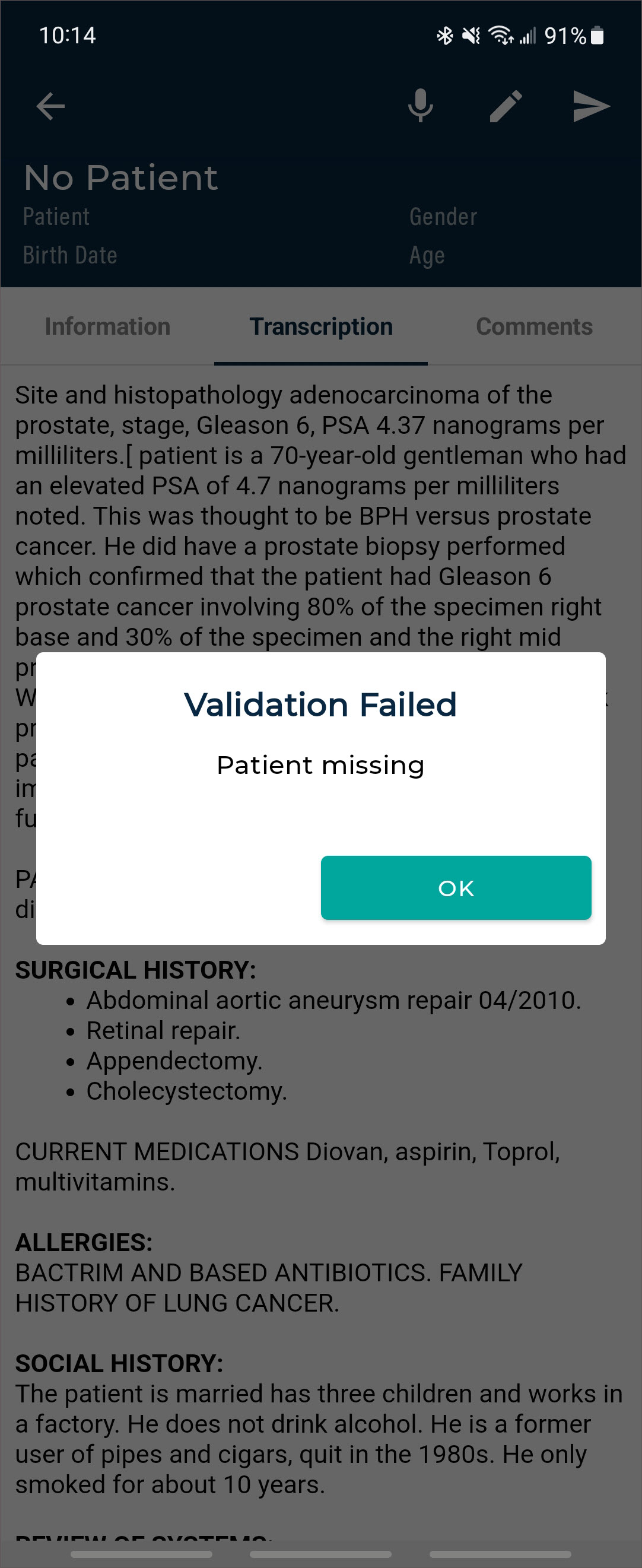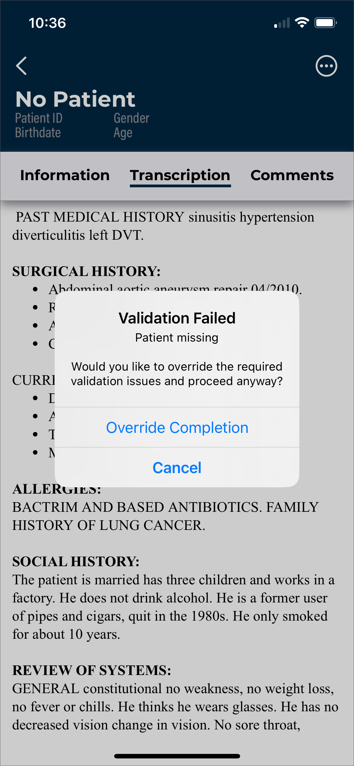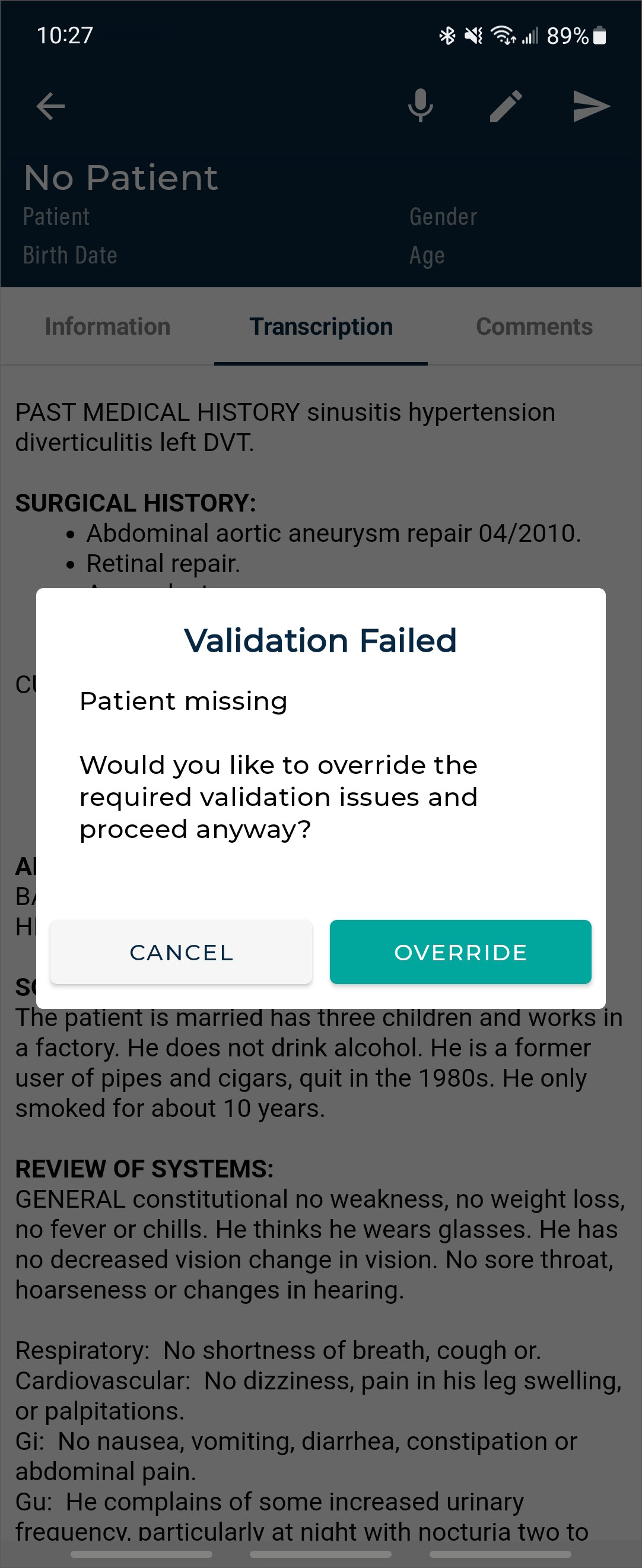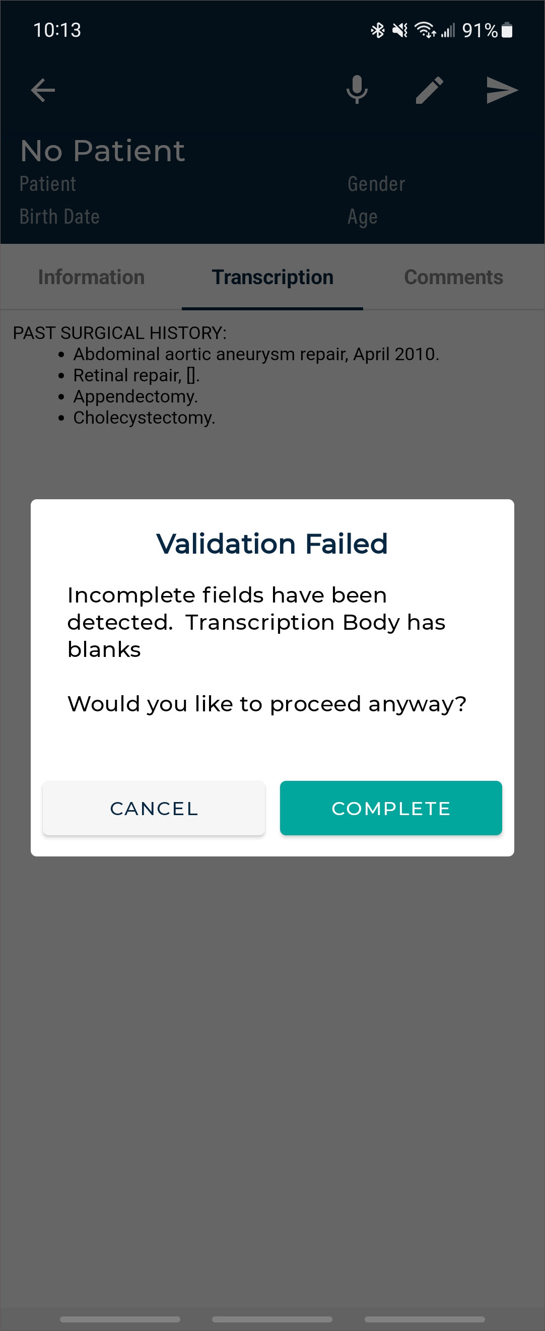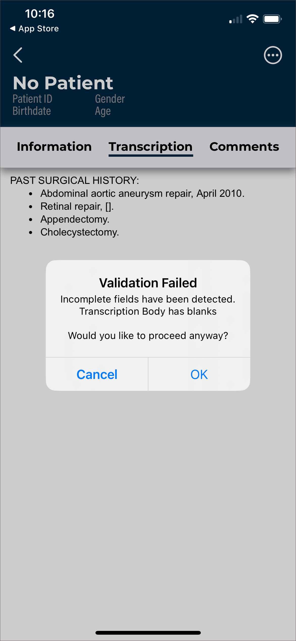 Uninstalling the app will permanently delete any incomplete (on-hold) dictations; please verify all started dictations have been uploaded prior to uninstalling the app. The user will be prompted to choose the region upon the first login after reinstalling the app.