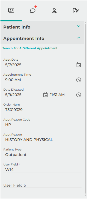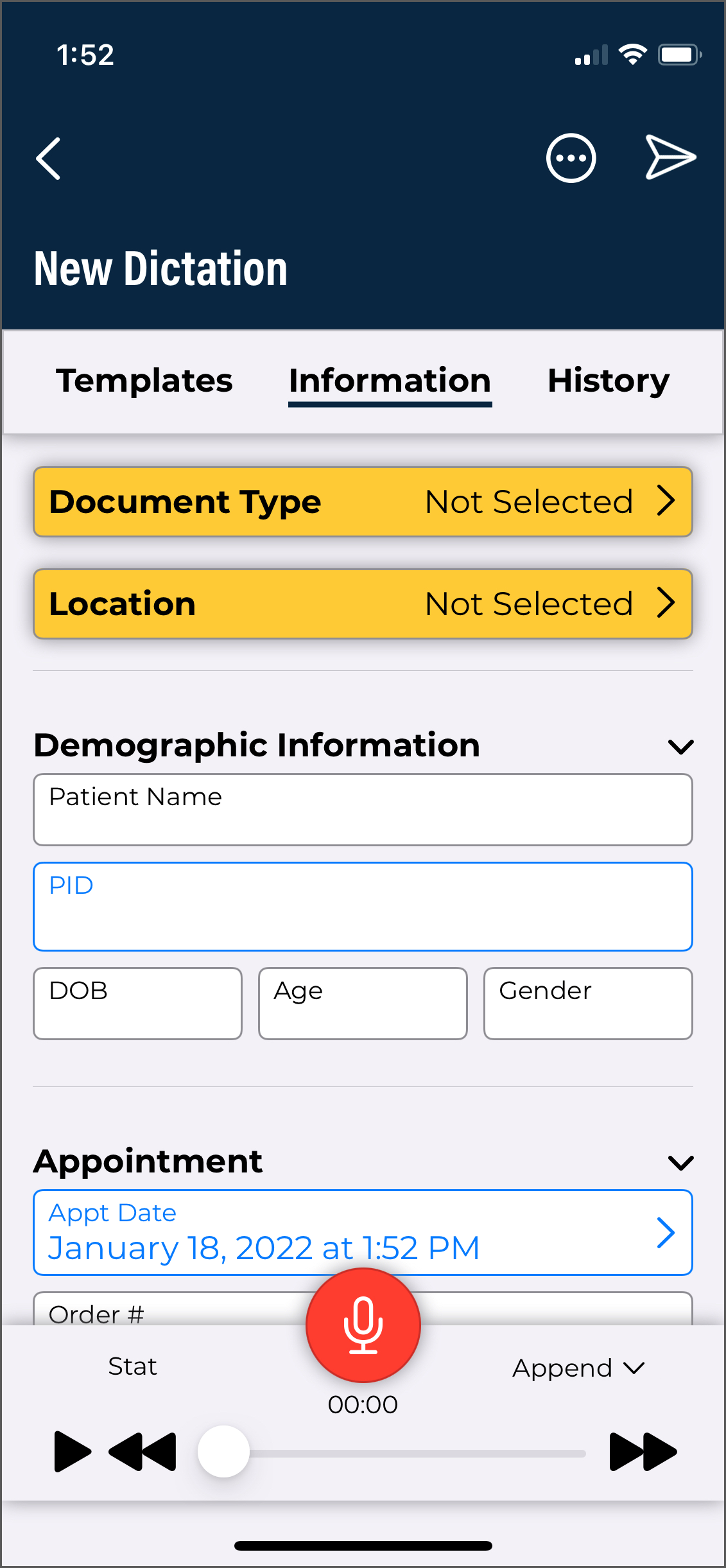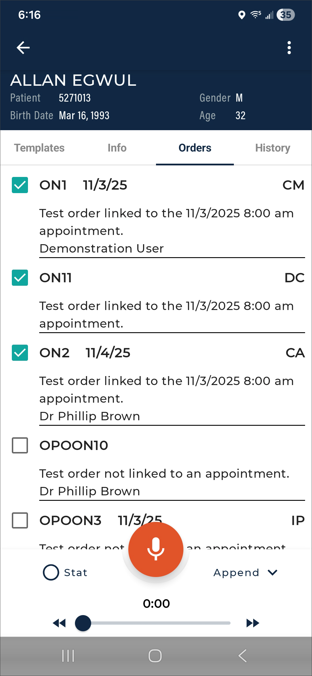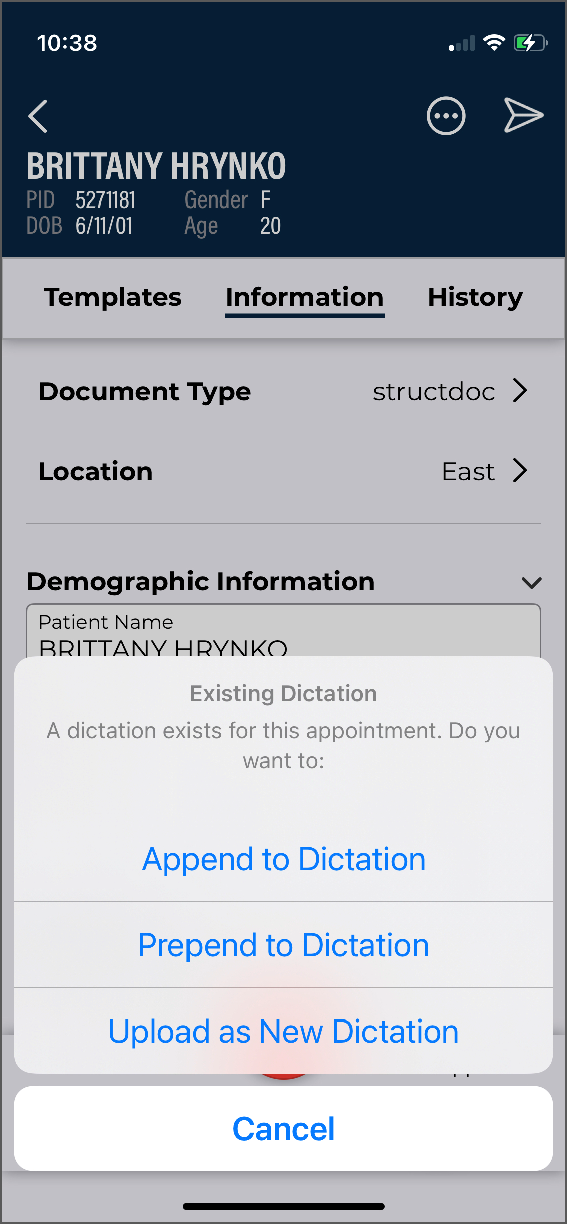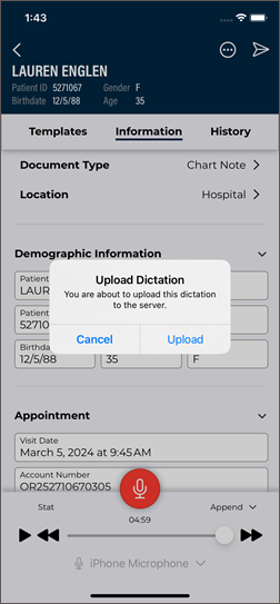 Dictation from another source - appointments with a dictation uploaded from a different mobile device or dictation source (InSync, InTouch, ShadowLink, etc.), or uploaded from this device but no longer stored on this device. Dictations uploaded from other devices or apps cannot be played from this device.