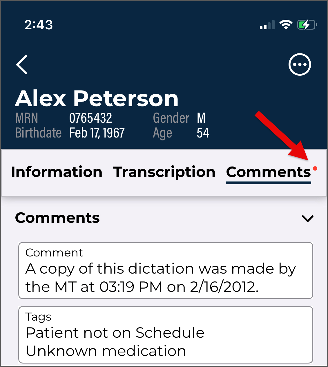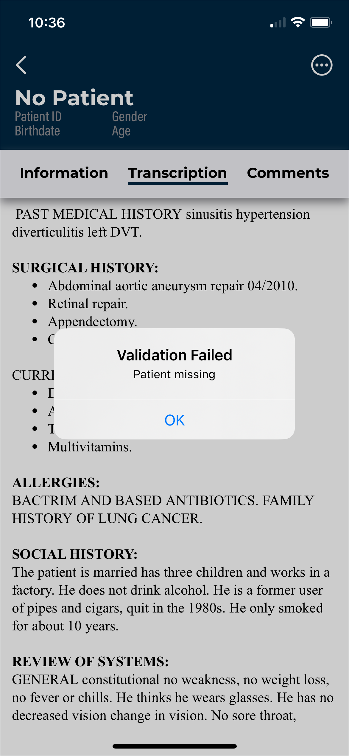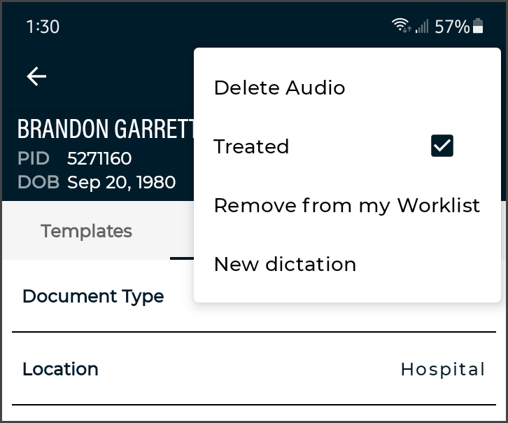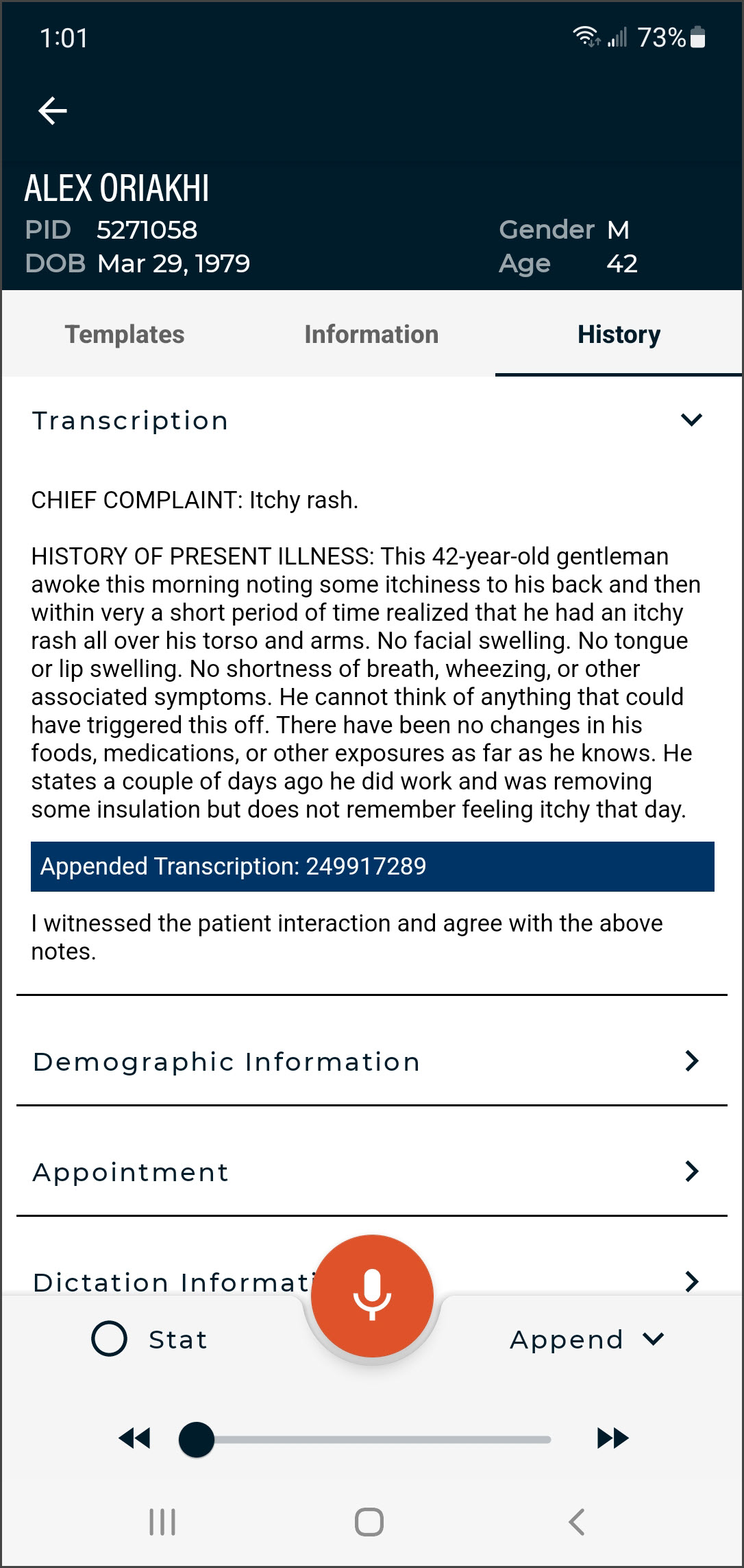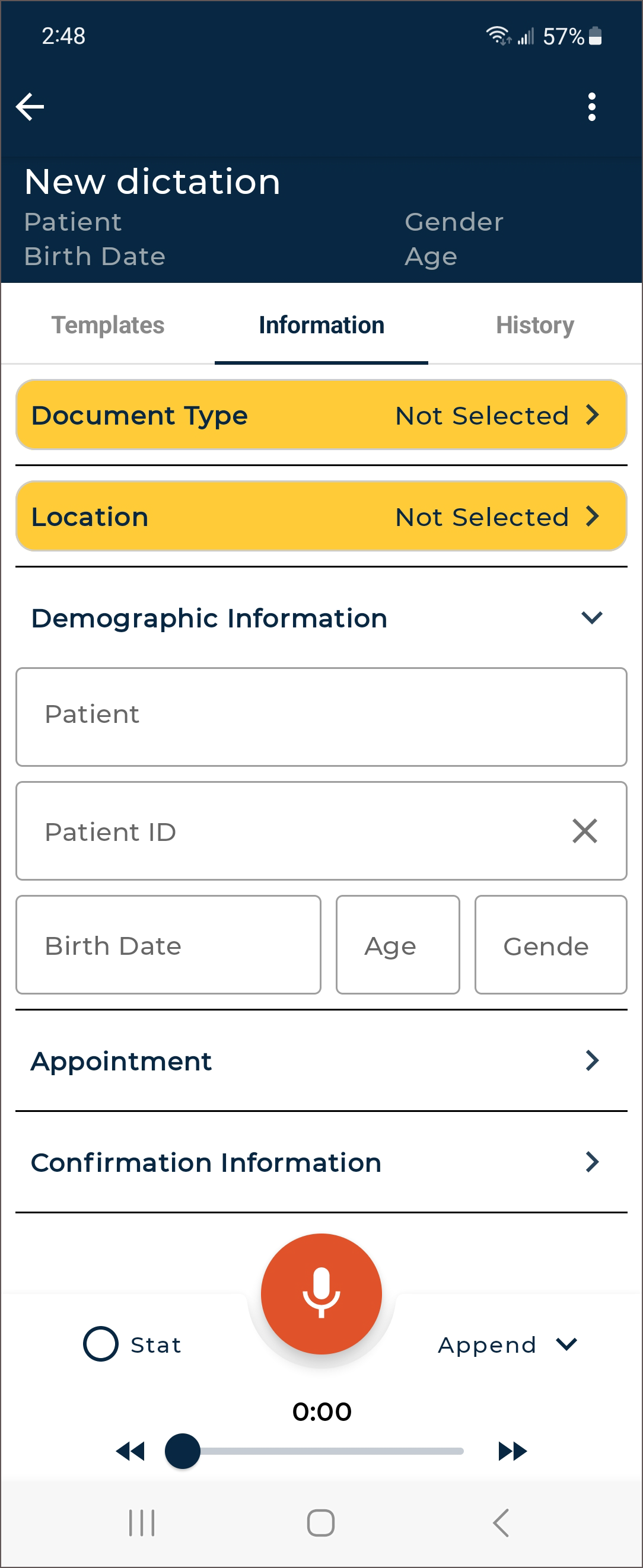 Dictation from another source - appointments with a dictation uploaded from a different mobile device or dictation source (InSync, InTouch, ShadowLink, etc.), or uploaded from this device but no longer stored on this device. Dictations uploaded from other devices or apps cannot be played from this device.