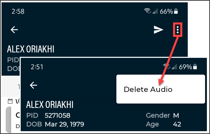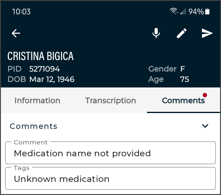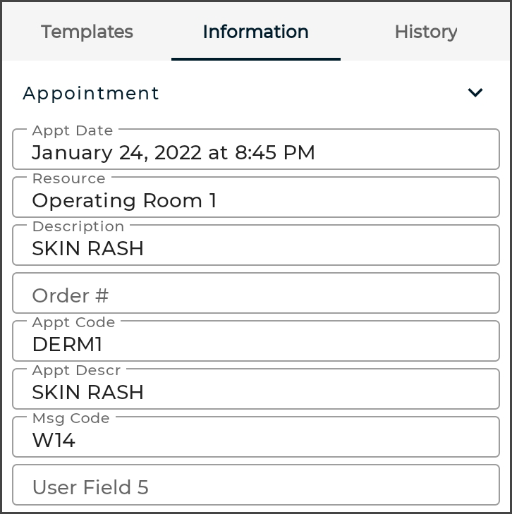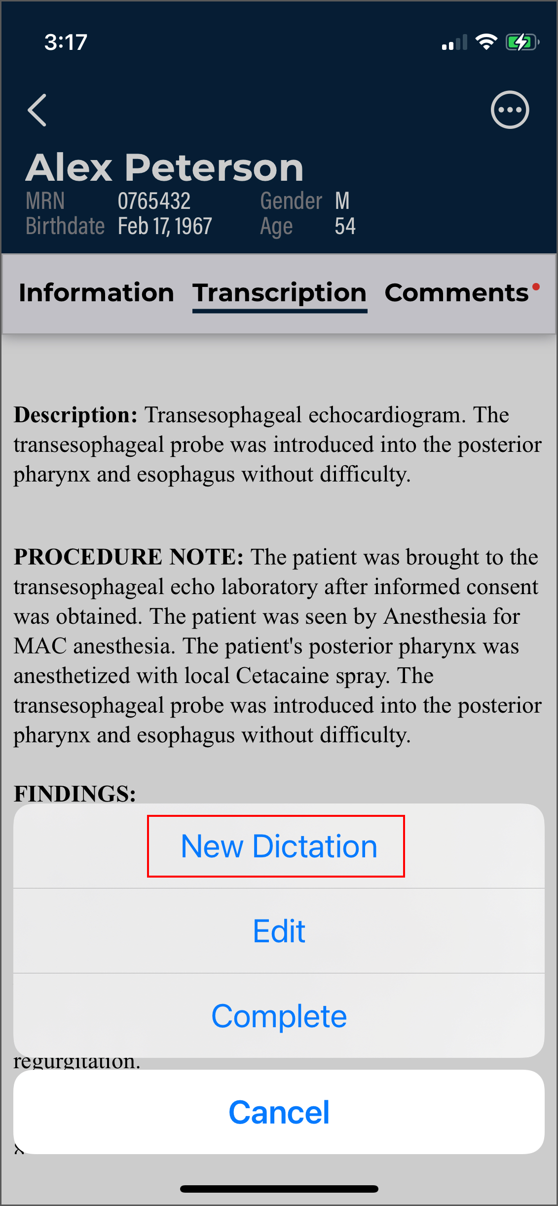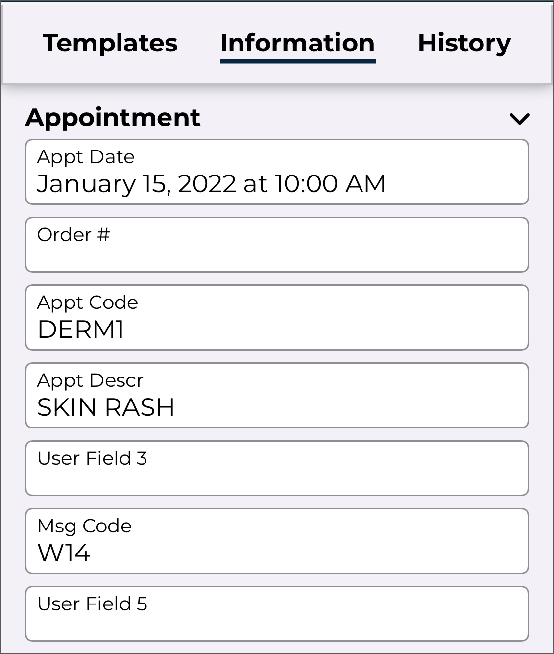 Dictation from another source - appointments with a dictation uploaded from a different mobile device or dictation source (InSync, InTouch, ShadowLink, etc.), or uploaded from this device but no longer stored on this device. Dictations uploaded from other devices or apps cannot be played from this device.