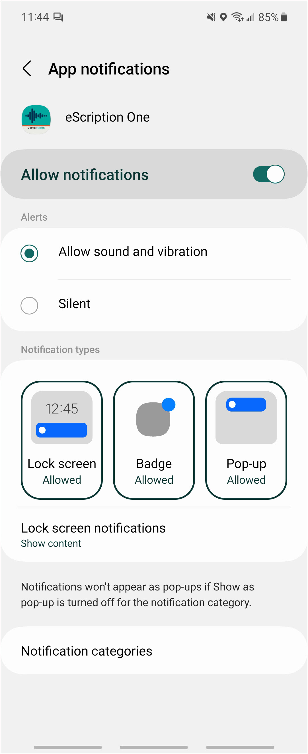 Communicates over port 443 to https://mobile.escription-one.com using TLS 1.2.