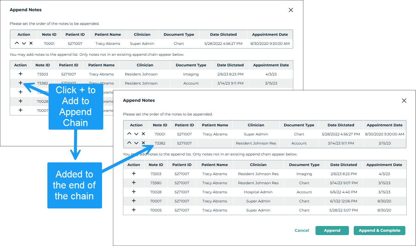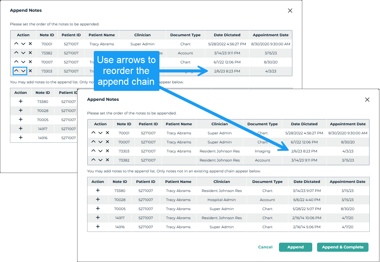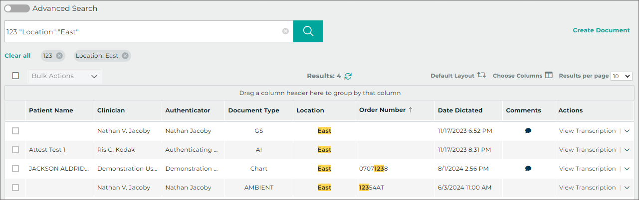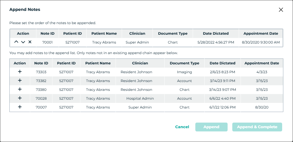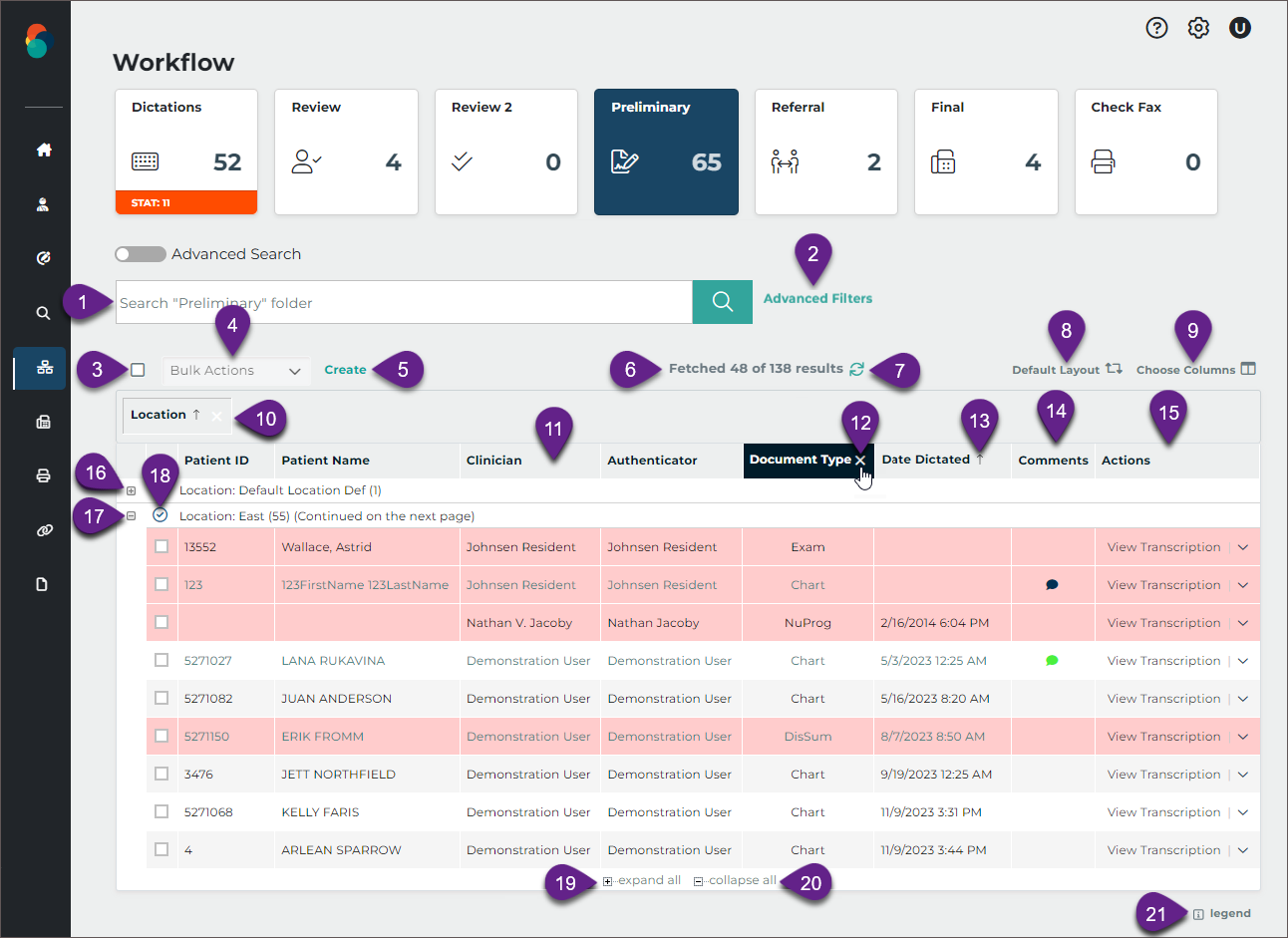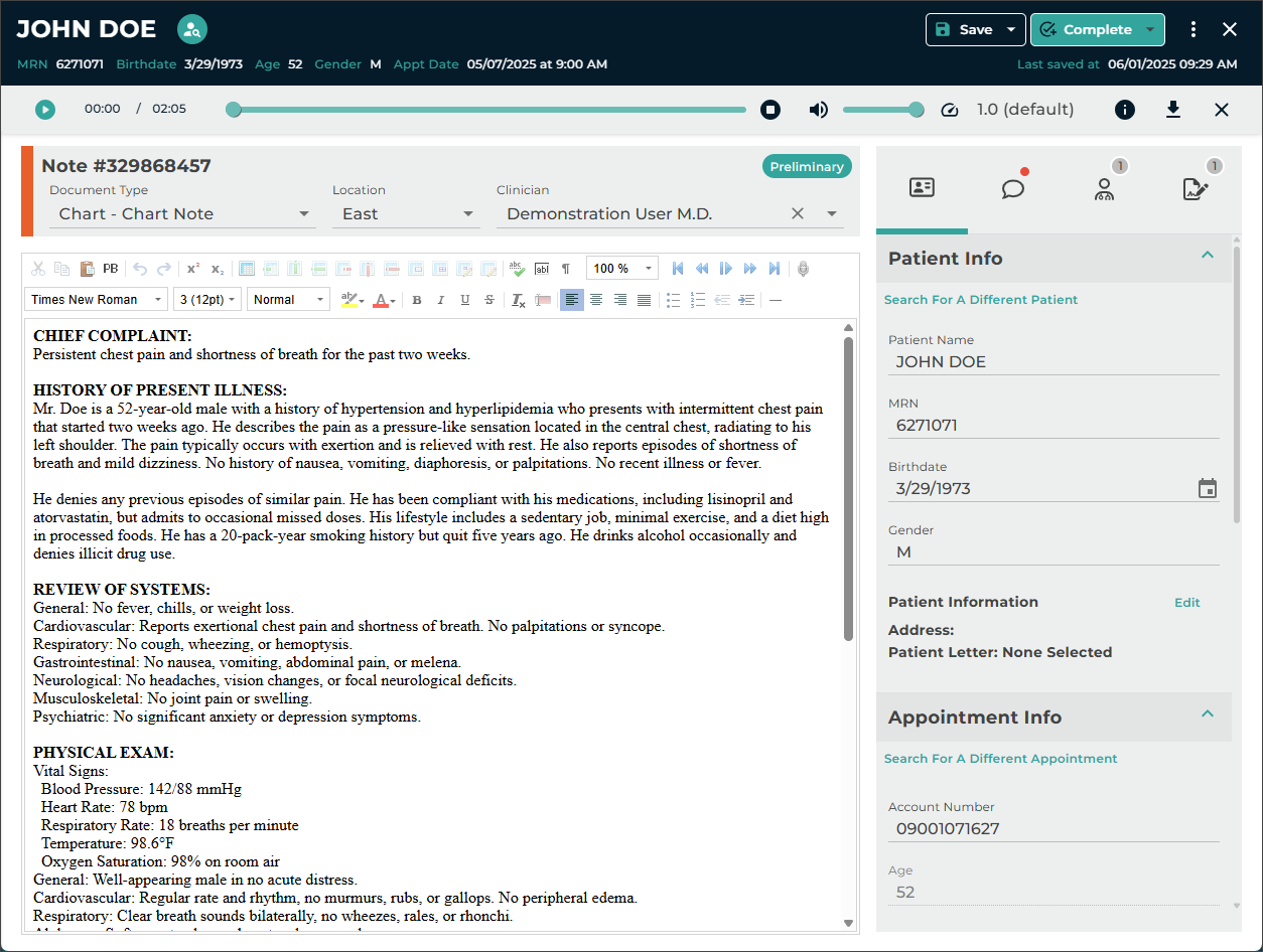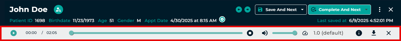 Use the Patients tab to view a list of patient appointments/encounters and create dictations.