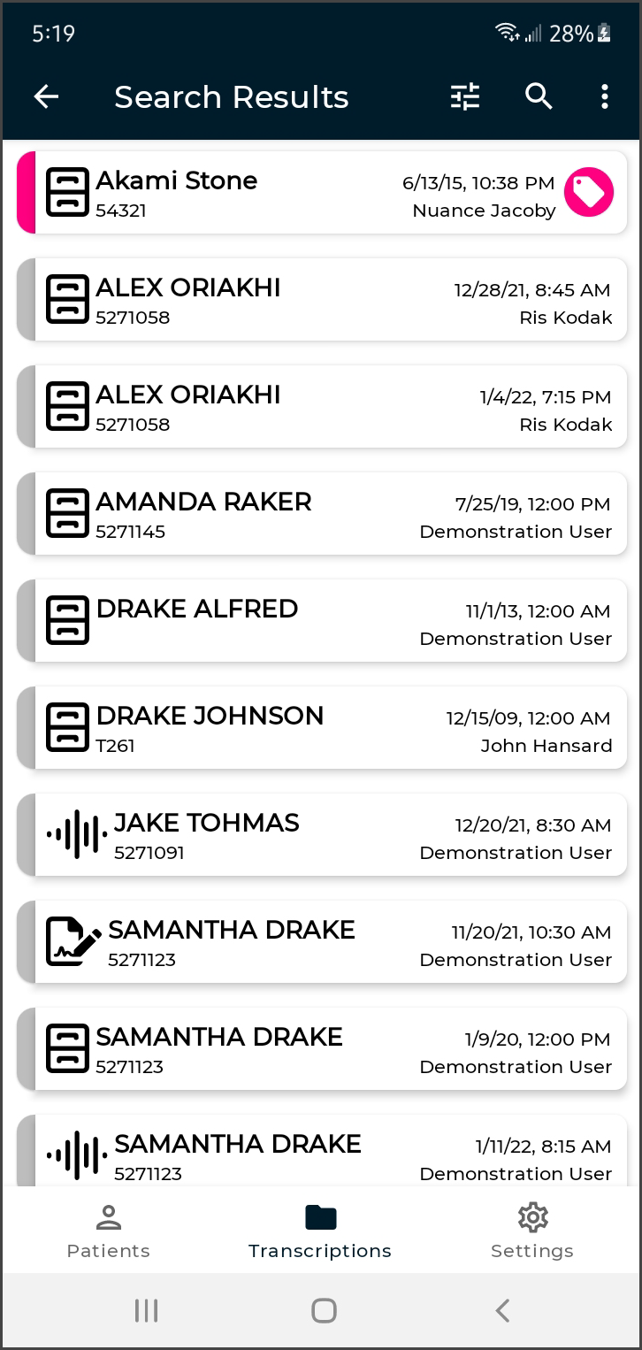 eSOne Mobile for Android offers a convenient, portable, end-to-end documentation process on any device running the Android operating system, such as tablets or phones. Clinicians can easily review, edit and complete documentation on their mobile device, as well as submit dictations for transcription. eSOne Mobile is a safe, secure application that supports HIPAA compliance.