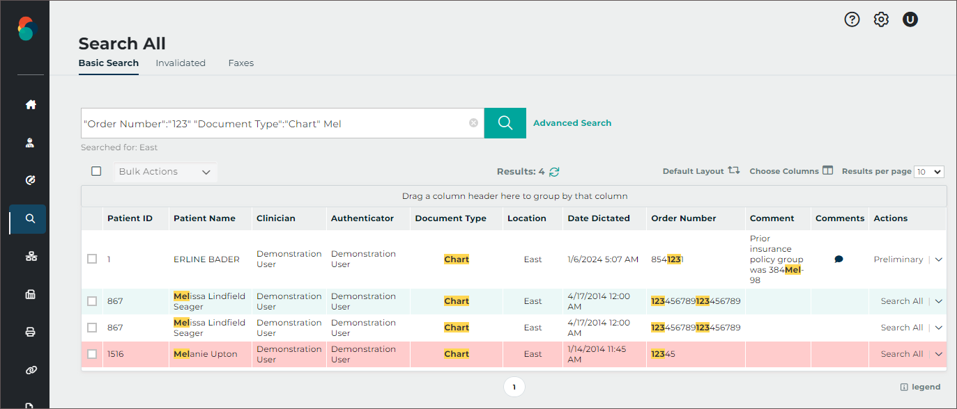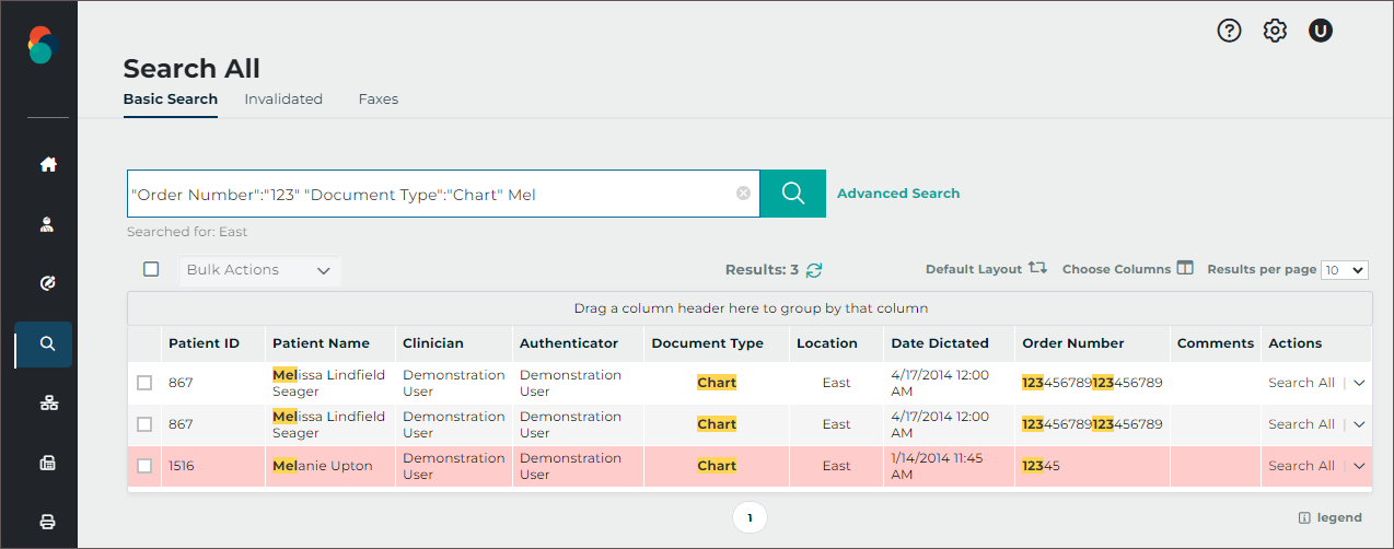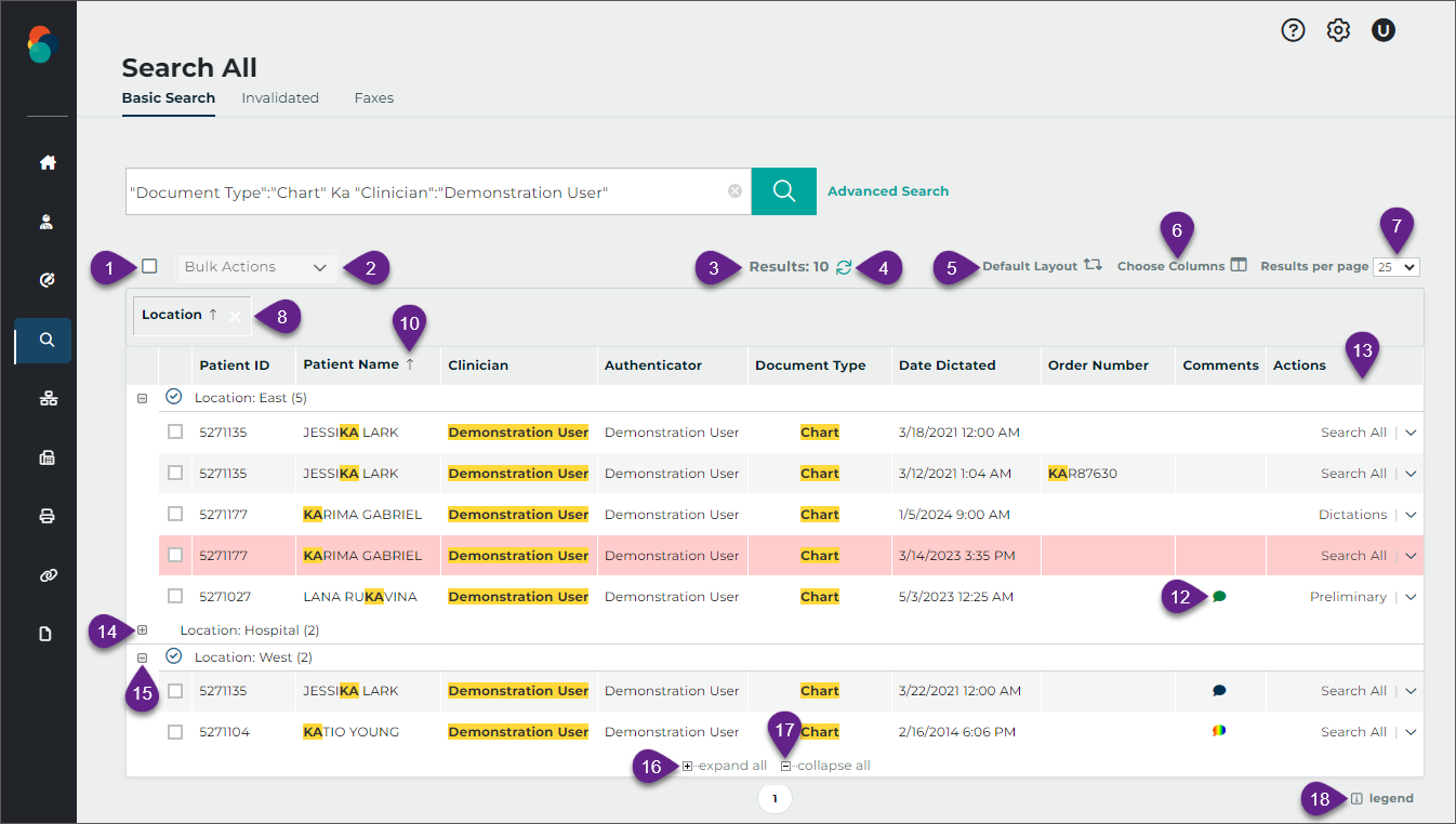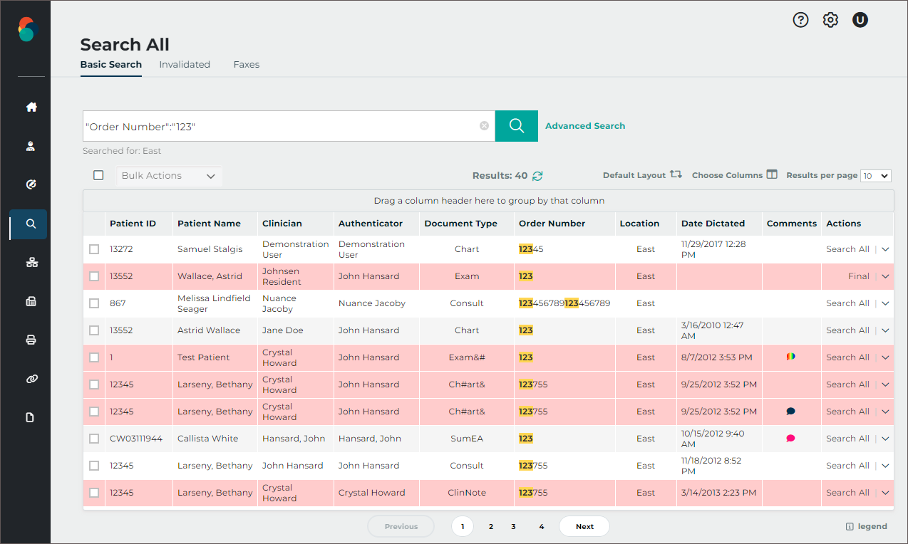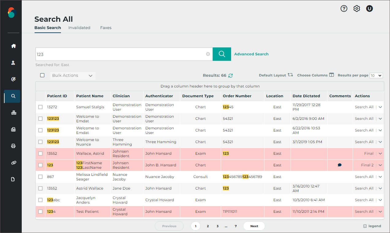 Grouping and filtering functions are the same as in the Faxes grid. Please see Grouping, Sorting and FilteringGrouping, Sorting and Filtering for more information