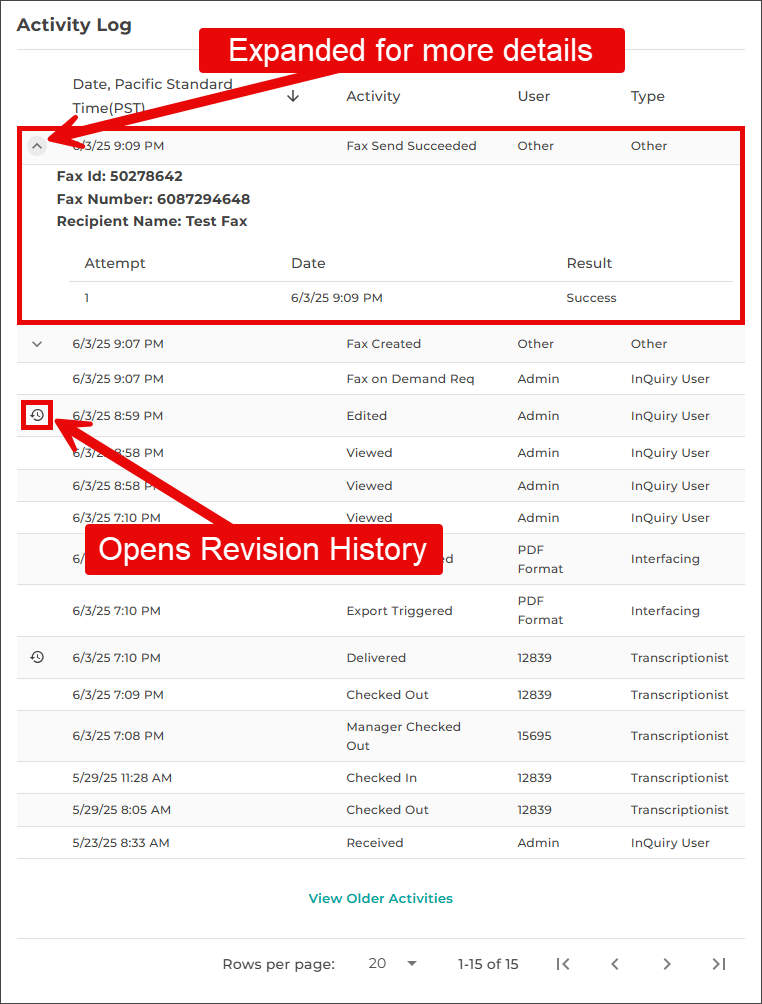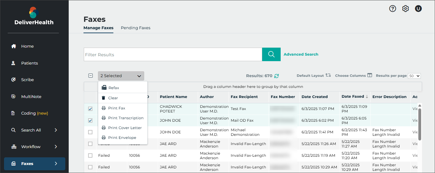 You can also print faxes, notes, cover letters, and envelopes directly from Services > Manage Faxes.