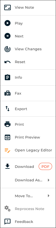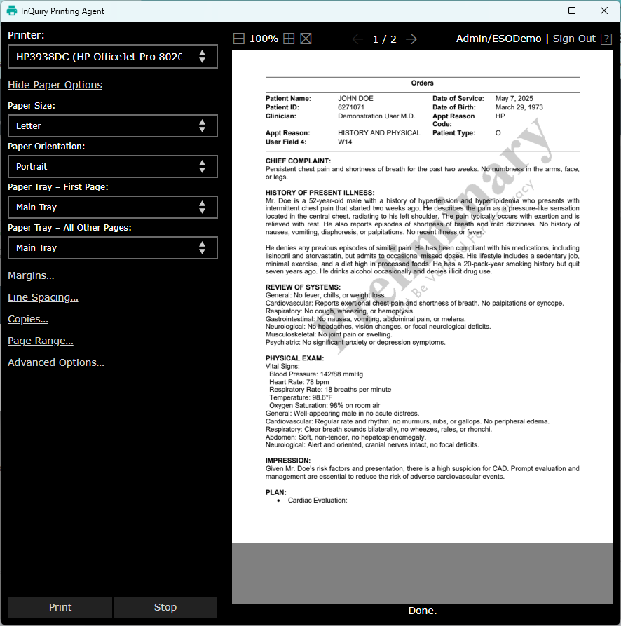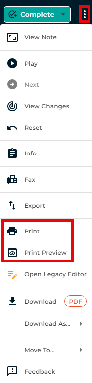 - Print Preview – opens a rendered PDF of the note in the Printing Agent