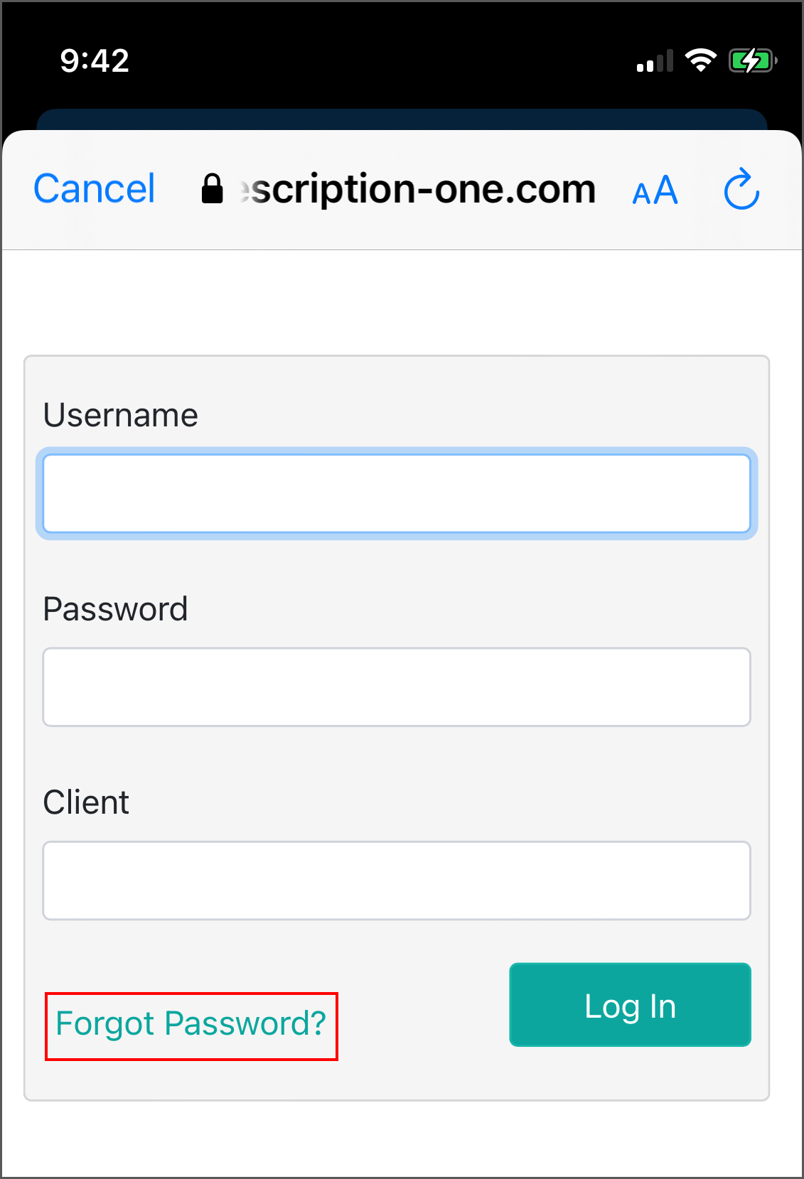 The 'Forgot Password?' link next to the Log In button allows users who have saved a valid email address to receive password reset instructions by email if it is lost or forgotten. For more information, go to Email Verification and Resetting Password.