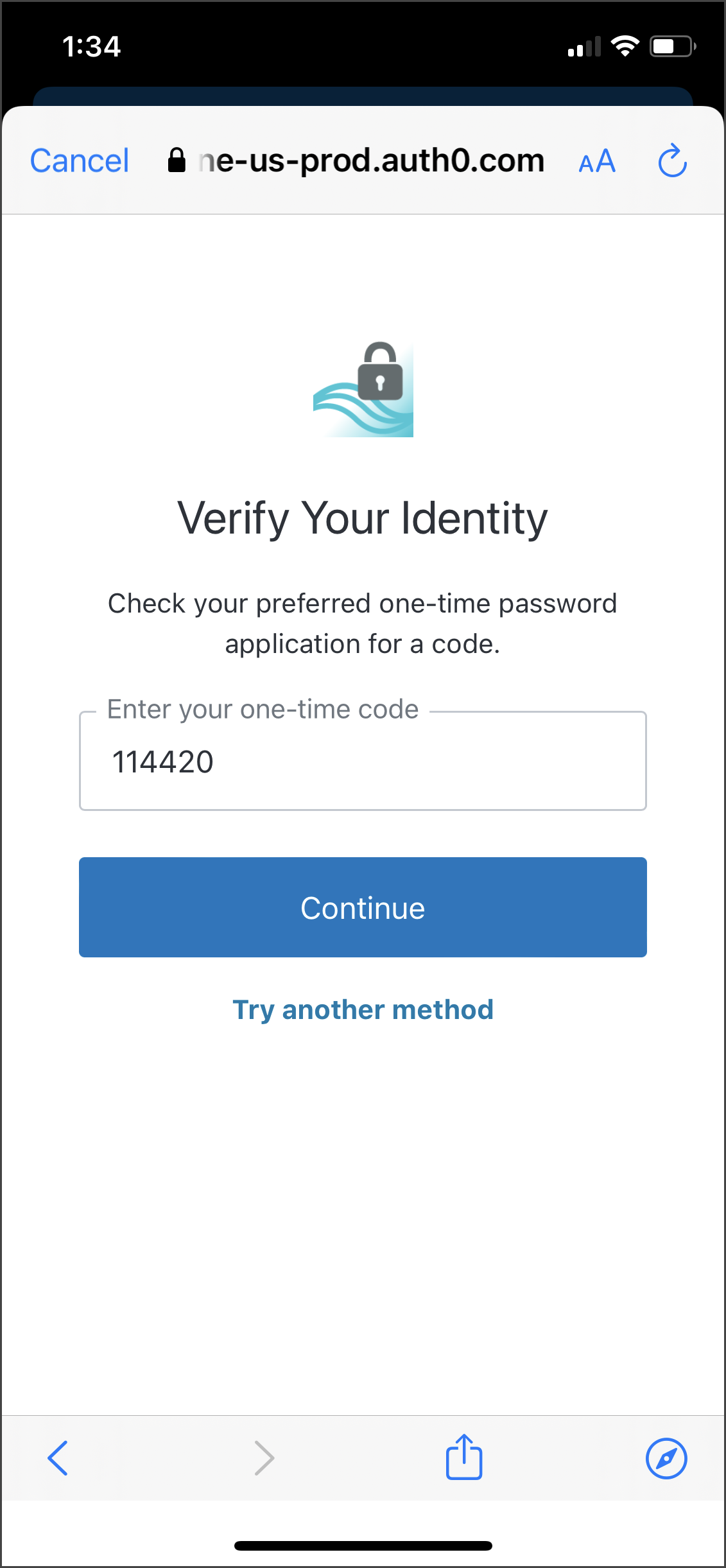 Open the Guardian app and choose the token for your user. A one-time code will appear at the bottom of the Guardian app. Enter this code on the 'Verify Your Identity' screen.
