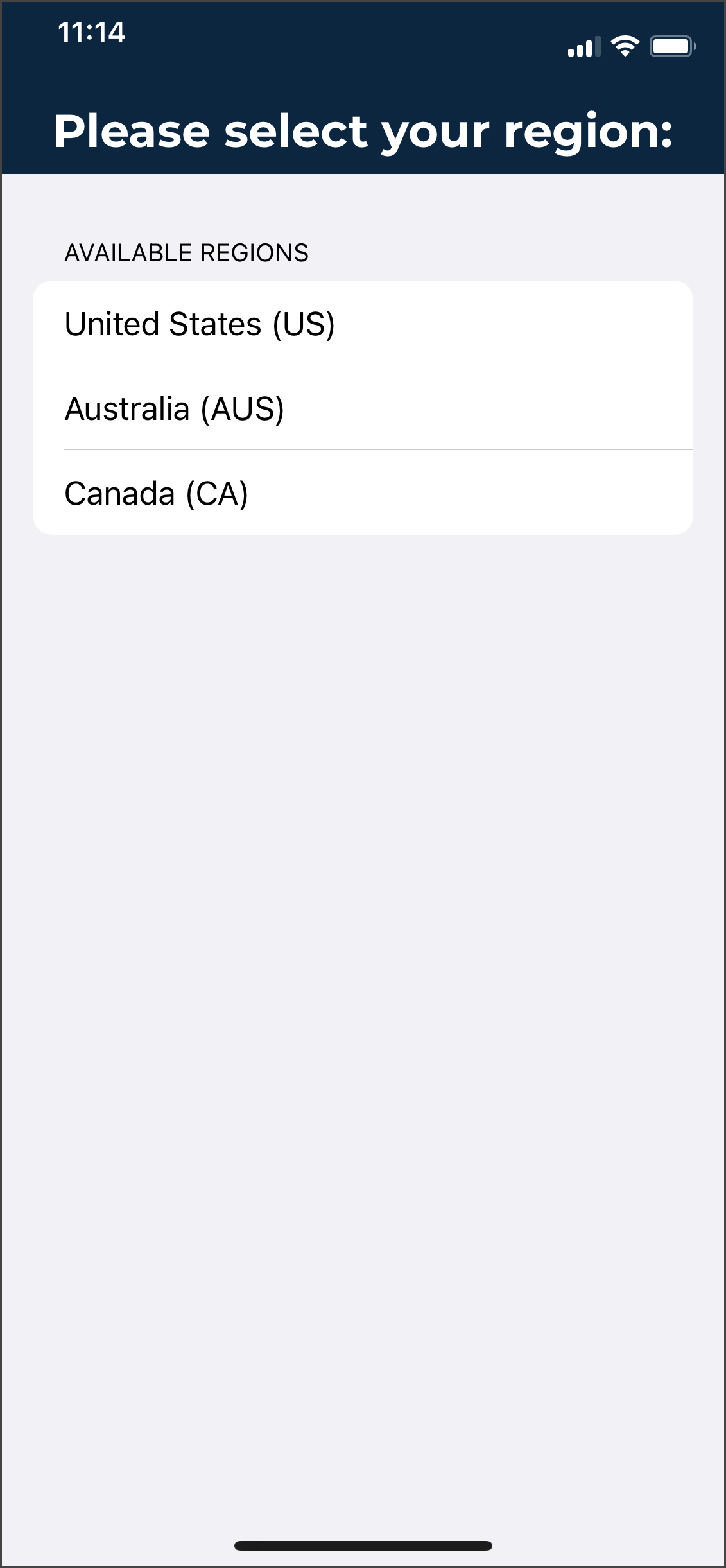 When the eSOne Mobile app is launched for the first time users will be prompted to select a region. This allows the app to connect to the proper servers. Choose the region that applies to the client and tap Select.