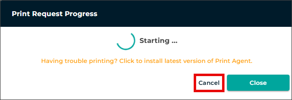 Click Cancel Printing in the InQuiry print dialog to cancel the job and any follow-up actions like completing or logging batches.