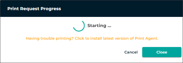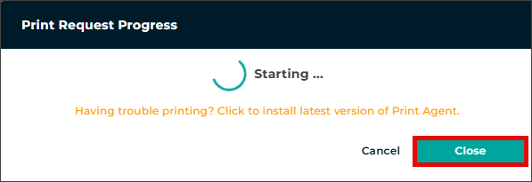 Click Close to exit the print dialog. You can still print from the agent, but no batch log will appear.